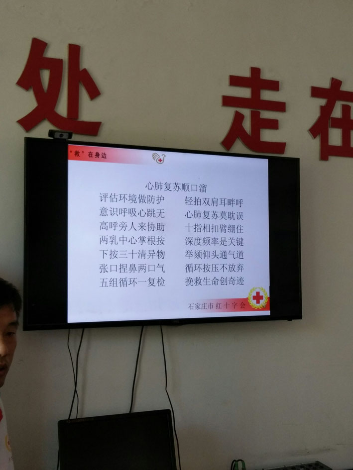 活动现场,吕志纲老师针对心肺复苏、人工呼吸、紧急包扎等内容进行了详细讲解及现场演示。并将心肺复苏知识转化成通俗易懂的顺口溜,方便大家学习记忆。