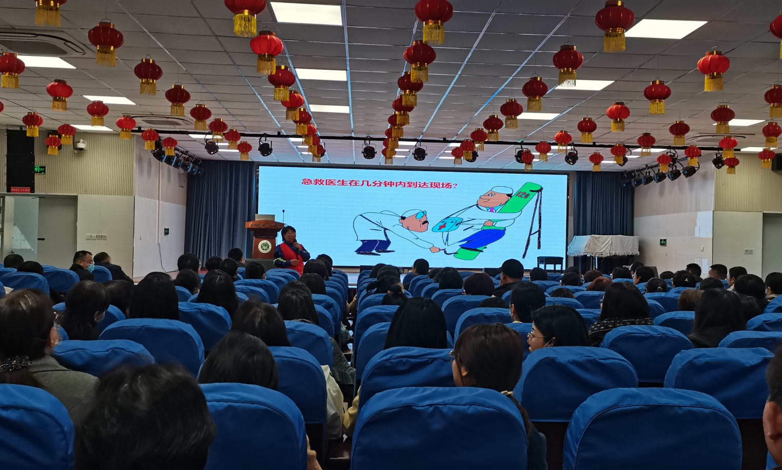 红十字会应急救护培训师通过理论宣讲和现场演示相结合的方法,向老师同学们普及了应急救护知识。结合真实案例告诉了学生们发生在身边的一些常见的突发事件,强调了抢救生命的“黄金4分钟”,讲授了心肺复苏的步骤和流程,让学生们了解到急救的重要性,并为大家详细全面地讲解了如何正确判断救助者是否属于需要心肺复苏的患者,主要从意识、呼吸、心跳等情况展开判断。