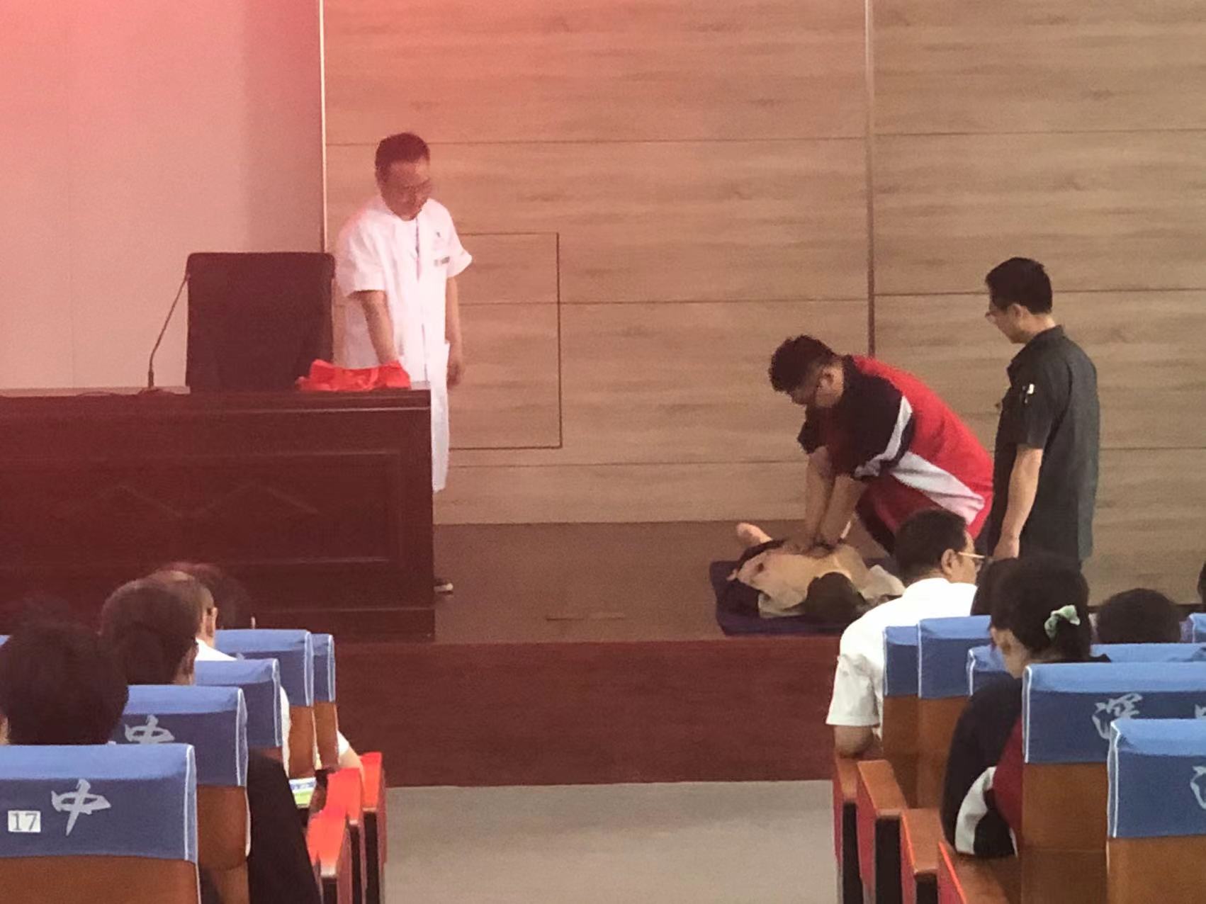 今年5月12日是我国第15个全国防灾减灾日,为进一步推进平安和谐校园建设,提升学生在突发意外伤害的自救、互救能力,更好地保护师生生命安全和身体健康,5月12日下午,深泽县红十字、县卫健局、县教育局联合在深泽中学开展应急救护培训进校园活动。全县各中小学健康教育辅导教师,深泽中学学生共计200余人参加此次活动。