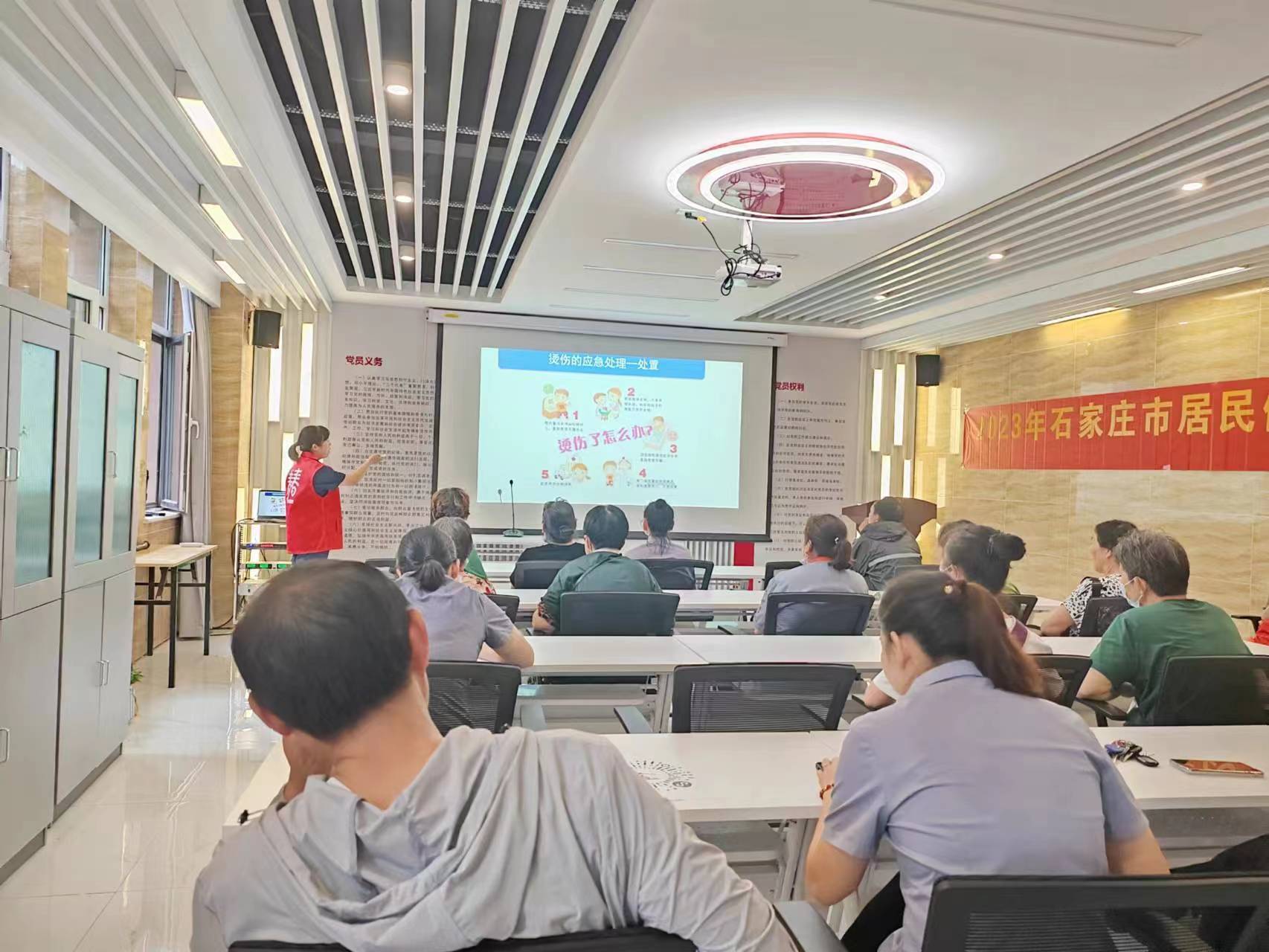 本次培训采用“课堂讲授+情景模拟+实操辅导”相结合的方式进行授课。区红十字会师资细致讲解了如何应对生活中的突发事件,现场教授了急救基本常识、心肺复苏、犬伤应急处理、婴儿烫伤等内容。