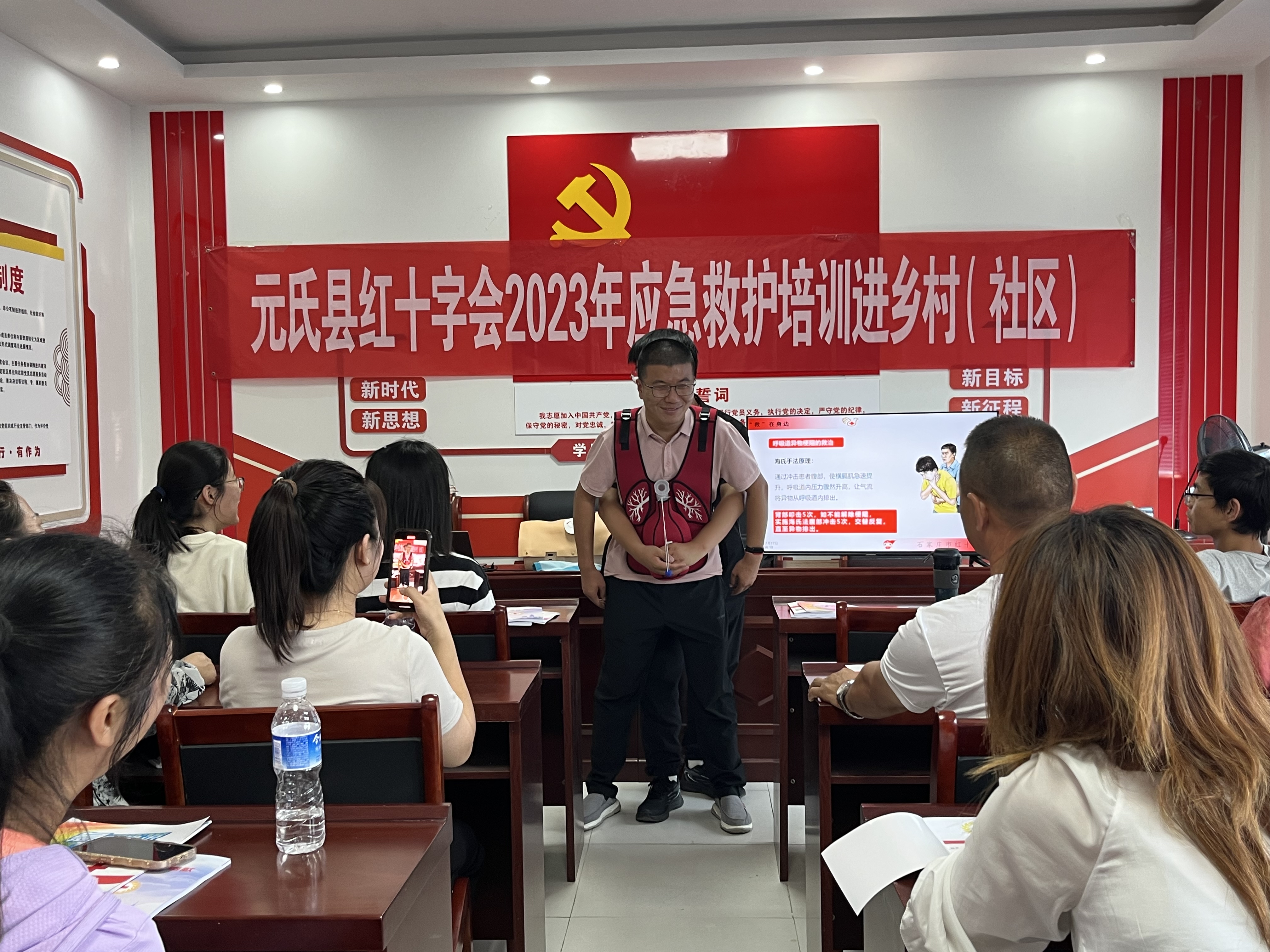 为进一步普及应急救护知识,提升社区居民应急处置能力,提高自救互救能力,为挽救生命抢得先机,真正做到“救”在身边,7月17日,元氏县红十字会在槐阳镇嘉惠社区开展红十字救护员培训。