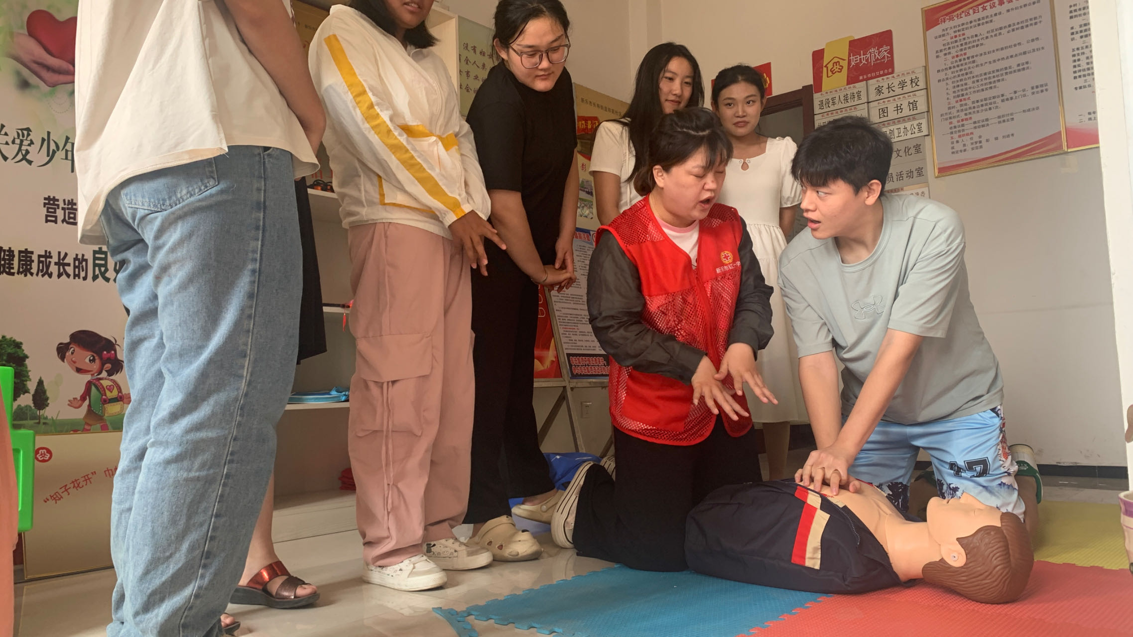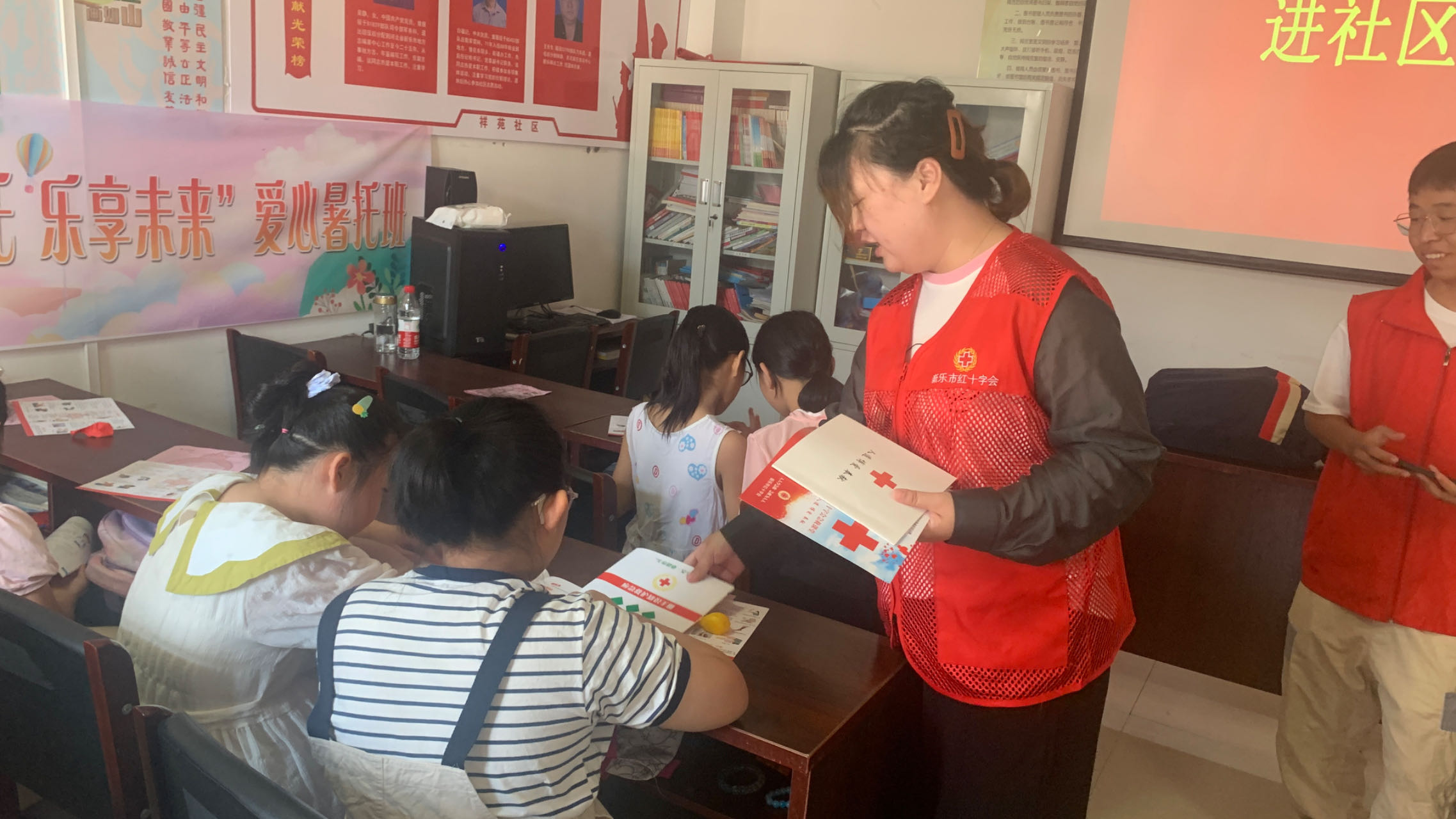为大力弘扬“人道、博爱、奉献”红十字精神,进一步推动红十字会应急救护培训“五进”工作,增强人民群众的应急救护意识,7月27日,新乐市红十字会走进祥苑社区,为社区工作人员和暑期放假的大中小学生发放宣传资料,讲解应急救护知识,传授应急救护技能。