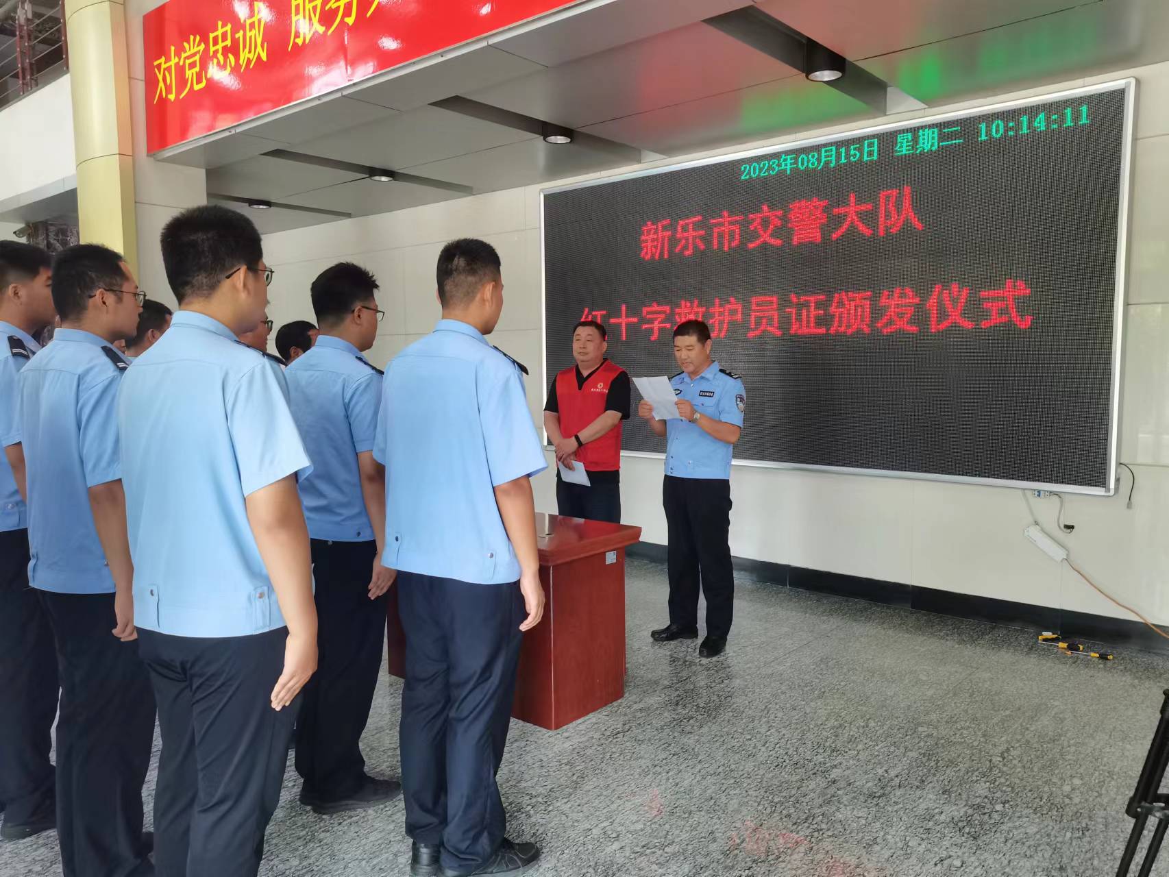 新乐市交警大队举行红十字救护员证颁发仪式