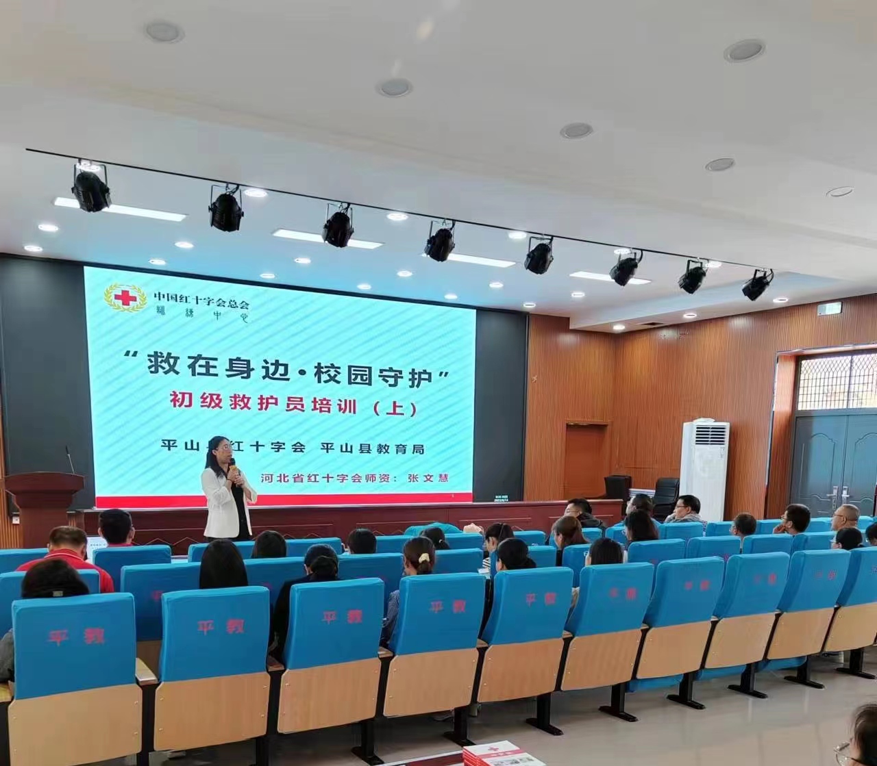 为大力弘扬“人道、博爱、奉献”的红十字精神,全面增强学校师生应对突发意外事件救护能力,9月14日平山县红十字会联合平山县教育局、平山县红十字应急救护培训中心开展了以“救在身边˙校园守护”为主题的应急救护培训进校园活动,全县各学校共100名分管安全工作的教师参加了培训。