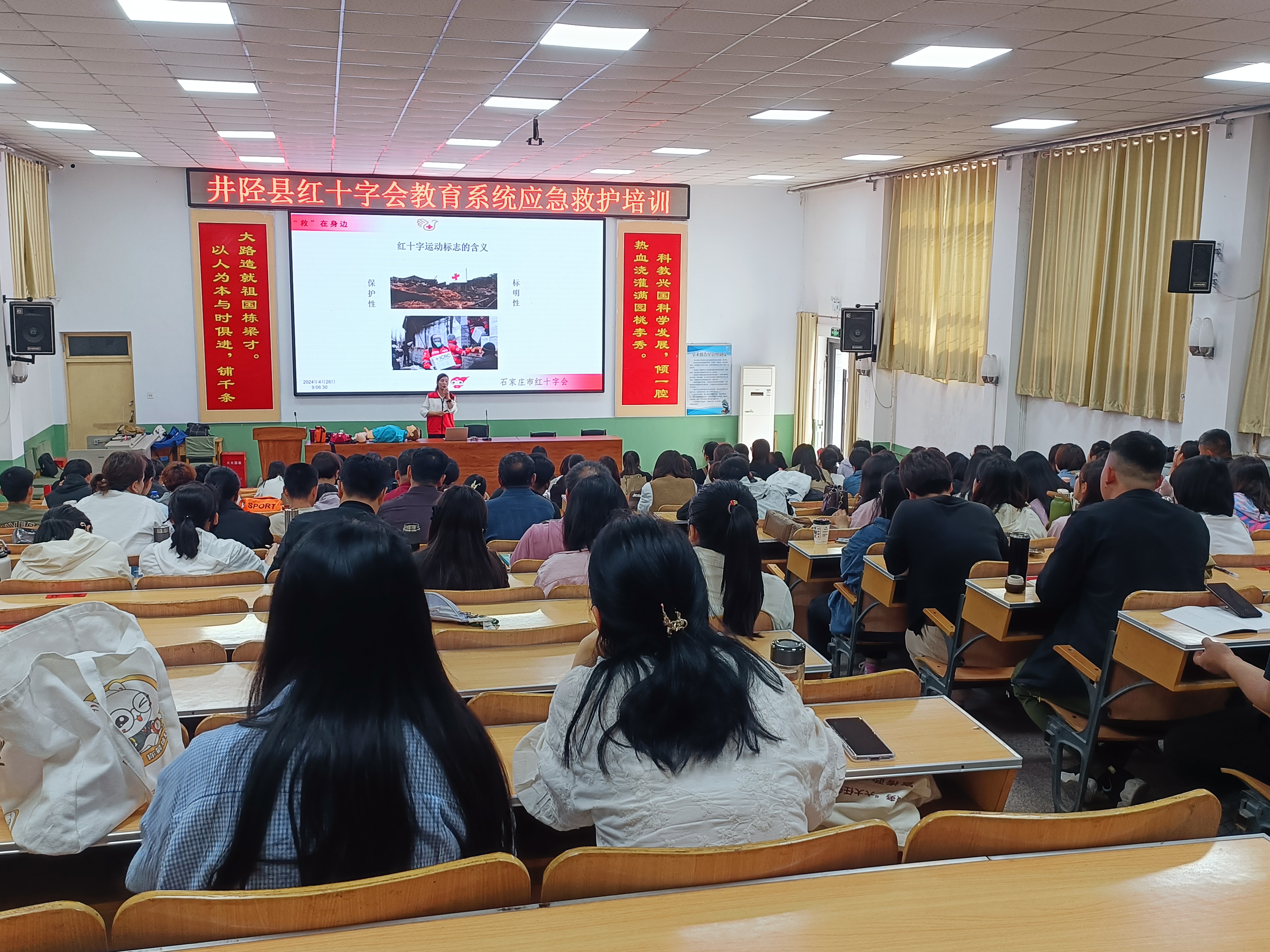 为全面提升全县各中小学应对公共安全突发事件的应急处置能力,切实提高广大师生自救互救技能,4月26日,井陉县红十字会在陉山中学举办了应急救护培训班,共有100余名教职工参加了培训。