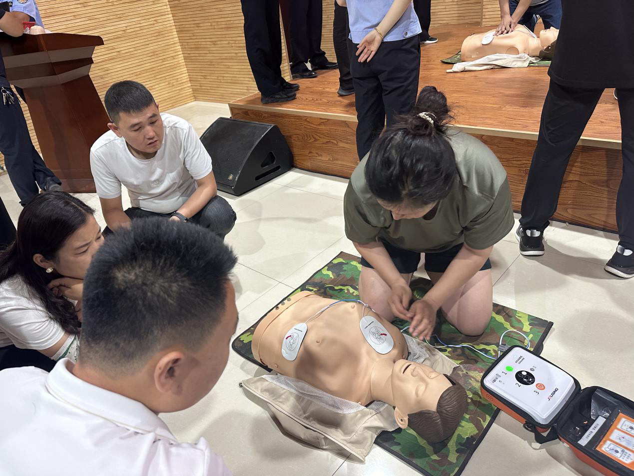 此次培训聘请了石家庄市红十字会培训中心的专业讲师,通过理论讲解和动作示范相结合的教学方式,从心肺复苏的急救基本知识进行讲解,并详细介绍了心脏骤停的诊断要点,借助模拟人道具现场演示如何正确胸外按压、开放气道及人工呼吸以及自动体外除颤器(AED)原理及使用方法。 理论授课结束后,在讲师的指导下,参训学员进行实操练习,整个培训过程中,全体学员听讲仔细、观看认真、操作严谨,对不清楚的问题当场请教,表现了高度的学习热情和积极性。