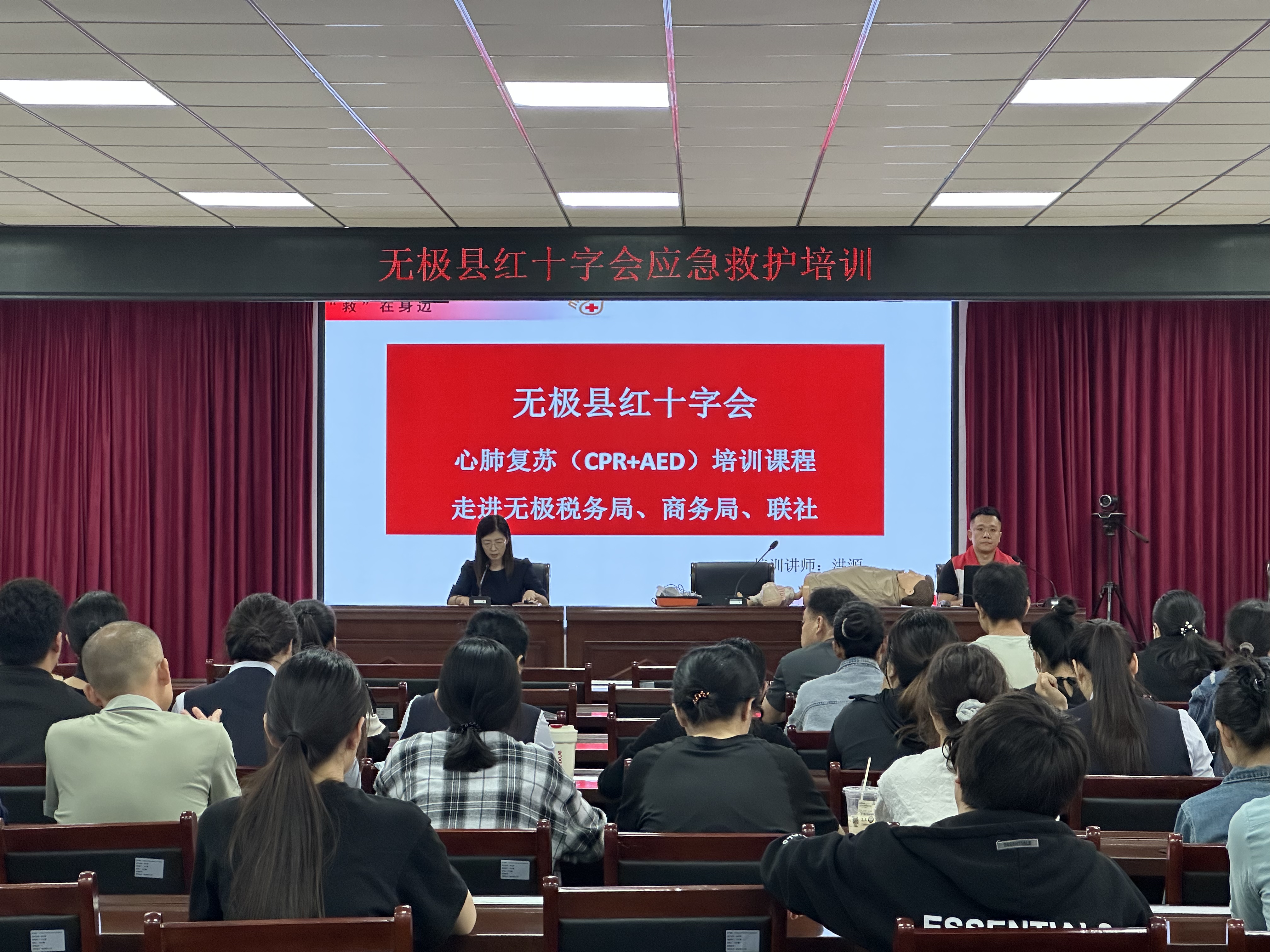 为进一步提高各行各业工作人员的应急救护能力,共同筑牢安全防线,9月29日,无极县红十字会联合税务局、商务局及联社等多个部门在税务局举办了应急救护培训活动。