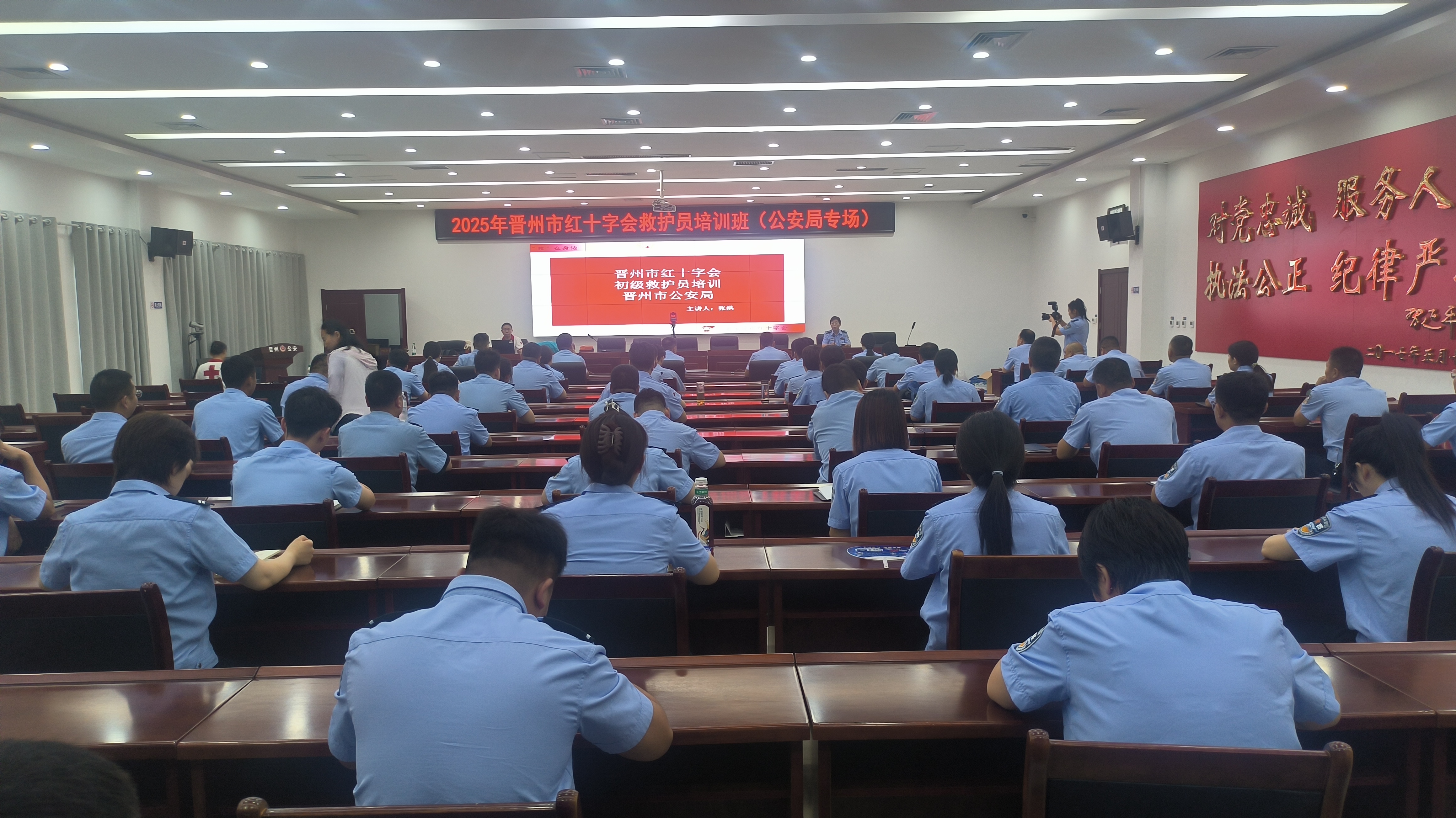 为进一步提高公安民警专业急救水平,提升应对突发事件的应急处理能力。7月17日,晋州市红十字会联合市公安局开展红十字初级救护员培训活动,来自公安系统的70余名民警参加了此次培训。