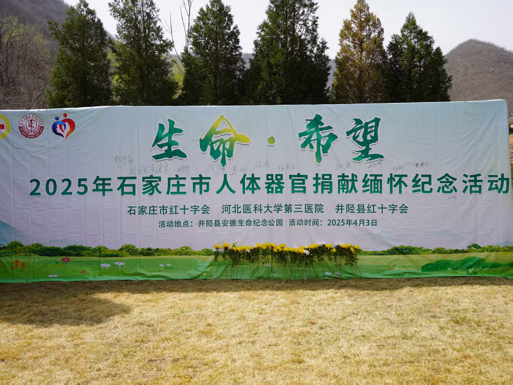 又是一年春草绿,又到缅怀追思时。为弘扬人体器官捐献者的大爱精神,倡导社会文明新风尚,4月3日上午,由石家庄市红十字会、河北医科大学第三医院、井陉县红十字会联合主办的“生命·希望”——2025年石家庄市人体器官捐献缅怀纪念活动在井陉县安德生命纪念公园庄严举行,来自各相关单位的领导及工作人员共计30余人参加了活动,共同缅怀器官捐献者,传递生命希望。