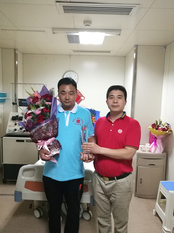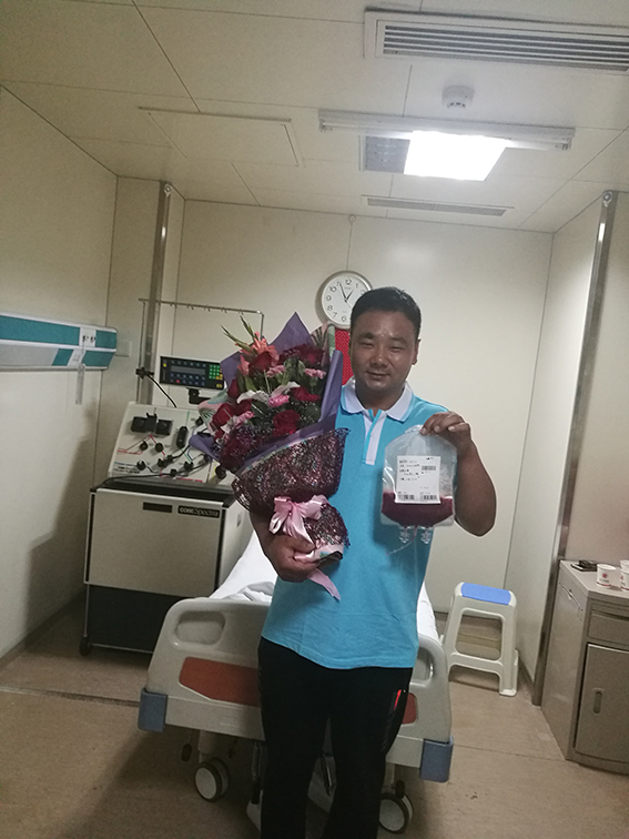 因患者已经入仓开始清髓预处理,工作人员迅速与总库、患者医院反馈沟通,争取最大程度推迟捐献时间。鉴于捐献者特殊情况,河北分库与总库、移植医院、采集医院共同制定了捐献方案,由石家庄市红十字会张忠桥主任,从医院用保温箱把动员剂送到捐献者所在乡村的卫生院,并留下来陪同捐献者按医嘱按时注射动员剂,每天向采集医院及时汇报捐献者情况,推后2天再进行采集。就这样,一周时间,捐献者在处理丧事的同时完成了捐献前动员准备,确保了捐献顺利进行。6月21日傍晚,在河北分库和石家庄市红十字会工作人员护送下,小马来到河北医科大学第二医院报到。2018年6月22日上午经过3个多小时的采集,成功捐出220毫升造血干细胞,为患者送去了“生命火种”。小马也成为了中华骨髓库第7409例,河北分库360例,石家庄第92例造血干细胞捐献者。
