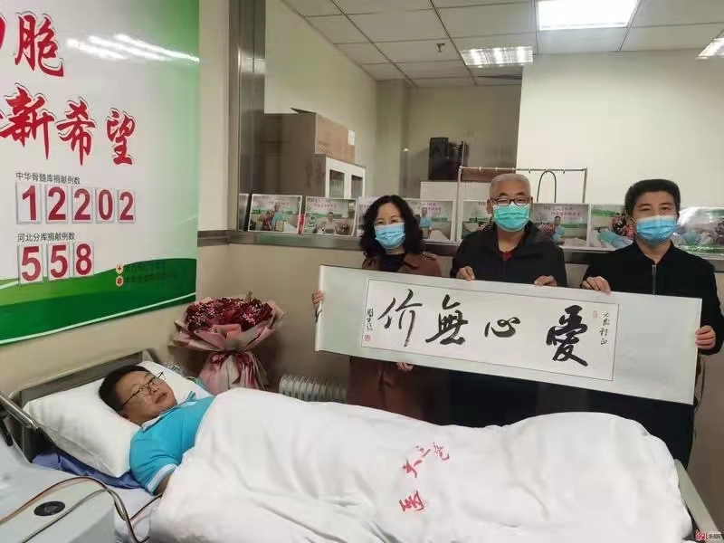 小郭是河北省石家庄市公安局交通管理局桥西交警大队的一名辅警,还是一名退伍军人,2014年,小郭在一次献血中加入了中华骨髓库。“今年6月份,我在一次晚高峰执勤时接到了电话,在了解到我的造血干细胞和一名患者配型成功后,我毫不犹豫答应了捐献。”小郭说。 河北省第558例、石家庄市第150例成功捐献造血干细胞的志愿者小郭 在谈到受助者是一名15岁的小女孩时,躺在床上的小郭真情流露:“我也有两个儿子,大儿子十岁,所以非常理解做父母的心情。”小郭说,“在儿子知道我要去救人后,非常支持我,让我多吃点,照顾好身体。”小郭因为常年在部队无法回家,在大儿子小时候,缺少对其的陪伴和关心,小郭表示这次捐献是给儿子做的最好的榜样。 “我是一名在部队服役了八年的老兵,曾援藏一年,当地群众有困难,我也会帮上一把。”小郭说,帮助别人这件事是刻在骨子里的,从脱下军装到穿上警服,他始终乐于奉献。小郭每年都会献血,这次配型成功,能够挽救一条生命,小郭表示自己人生中又多了一件有意义的事情。“像许三多说的那样做有意义的事。”小郭说,“能够帮助别人,自己也很快乐。” 石家庄市红十字会党组书记、常务副会长李遐(左),党组成员、秘书长郝瑞起(中)看望小郭。 打动员剂的几天里,小郭的爱人每天早上五点多起床一起陪同小郭来到医院。小郭是在最后时刻才将自己捐献的事情告诉爱人的,本以为爱人不会支持自己的决定,但没想到爱人在听到这件事后的第一反应是:“得捐,治病救人的事情,我们得做。”从知道小郭要捐献造血干细胞后,爱人对小郭无微不至的照顾着,在等待的日子里,小郭做足了准备。 “每个人活着,都在通过自己的方式去实现生命的价值,奉献是一种最好的方式,决定捐献干细胞我从未担忧退缩过,更没有后悔过,我觉得这是我一生中经历过的很有意义的事情。”小郭说,没有血缘关系的人配型成功的概率是非常低的,这是他和受捐者之间的一种缘分。在造血干细胞采集室,小郭看着受捐者给他写来的感谢信,信中写到:“我永远不会忘记一个素未相识的人挽救了我的生命。我会努力打败病魔,像您一样传递温暖,回报社会。” 在问到小郭对受助者的祝愿时,他表示希望她能战胜病魔,努力学习,去帮助更多的人。小郭呼吁:“希望更多的人加入到中华骨髓库,为更多血液病患者带来生的希望。” 中午12:40分,造血干细胞采集结束,为了让在广东接受治疗的受捐者尽快接收移植,小郭所在的桥西交警大队专门派出一辆警车将322毫升“生命种子”护送到机场。目前,这些“生命种子”已经离开石家庄送抵广东,将为这名血液病患者送去生命的希望。 文章来源:河北新闻网