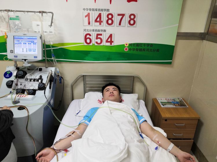 3月22日,桥西区辖区石家庄工程职业技术学院的一名2000年出生的大三学生王文龙,在河北医科大学第三医院采集造血干细胞。鲜血从他手臂中汩汩流出,经过一根长长的导管,进入造血干细胞采集机,预示着一名患者的重生。