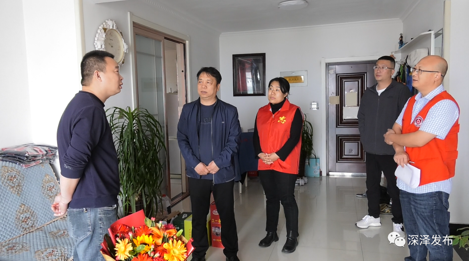 5月5日,深泽县红十字会和文明办工作人员一同看望慰问造血干细胞捐献者胡跃峰,为他送上了鲜花、荣誉证书、慰问金和慰问品,感谢他的善行义举及无私奉献的精神。