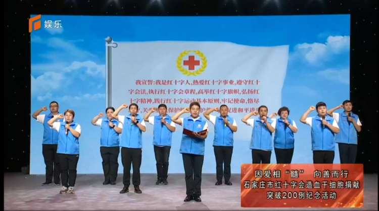 石家庄市红十字会党组成员、副会长戎怡为石家庄市第200例造血干细胞捐献者李旭颁发了捐献纪念牌;石家庄市红十字会第37例捐献者薛萍、第103例捐献者马谦、第118例捐献者侯丽段和第173例捐献者陈博轩,深情朗诵一封特殊的信《爱的呼唤》;红十字青少年向造血干细胞捐献者代表送上鲜花;河北省红十字会党组成员、办公室主任郝建强,石家庄市红十字会党组书记、常务副会长李遐为河北省血液中心、河北医科大学第二医院、河北医科大学第三医院、石家庄市人民医院、石家庄平安医院颁发了优秀合作单位和采集医院奖牌;石家庄市红十字造血干细胞志愿服务队现场进行了“我是红十字人”宣誓。通过一幕幕捐献造血干细胞志愿服务的感人故事,让老师们对捐献造血干细胞这项神圣而挽救他人生命的善举而深深的感动,老师们纷纷表示一定要把捐献造血干细胞这项工作在学校持续深入的宣传好。