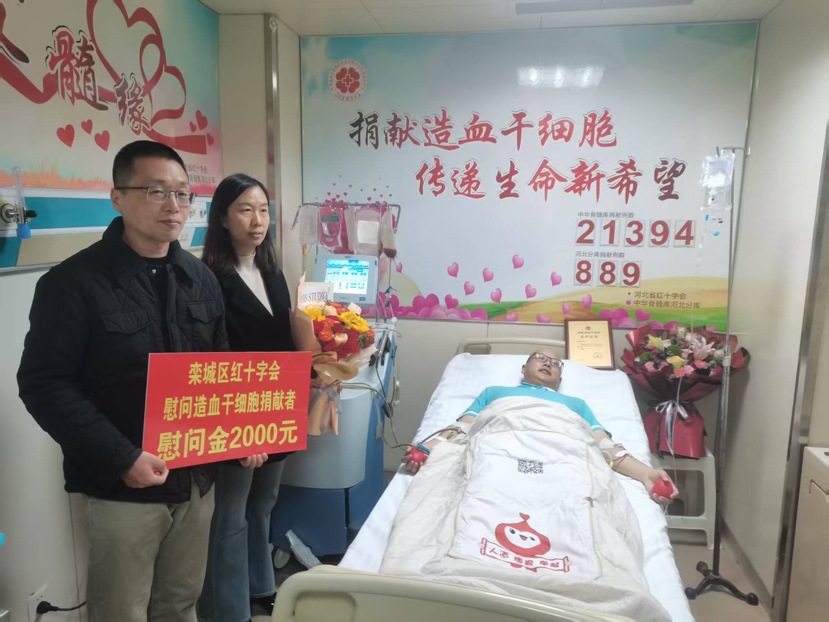10月30日上午,栾城区红十字会工作人员到河北医科大学第二医院慰问栾城区第9例造血干细胞捐献者苏先生。